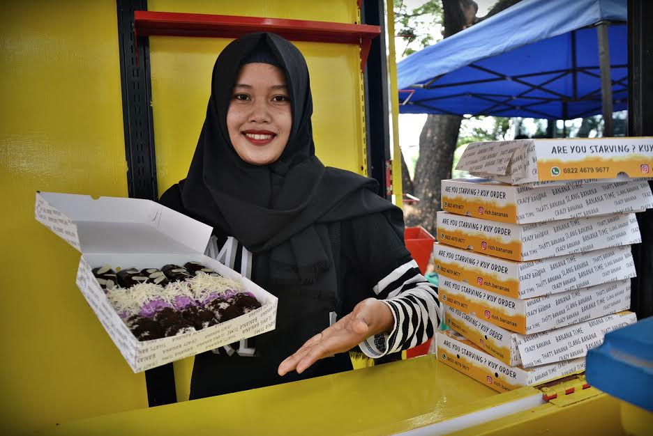Rich Banana’s, kue dari bahan dasar pisang ini mulai di pasarkan lewat gerobak mini di kawasan Lapangan Emy Saelan, Jl Hertasning, kota Makassar.