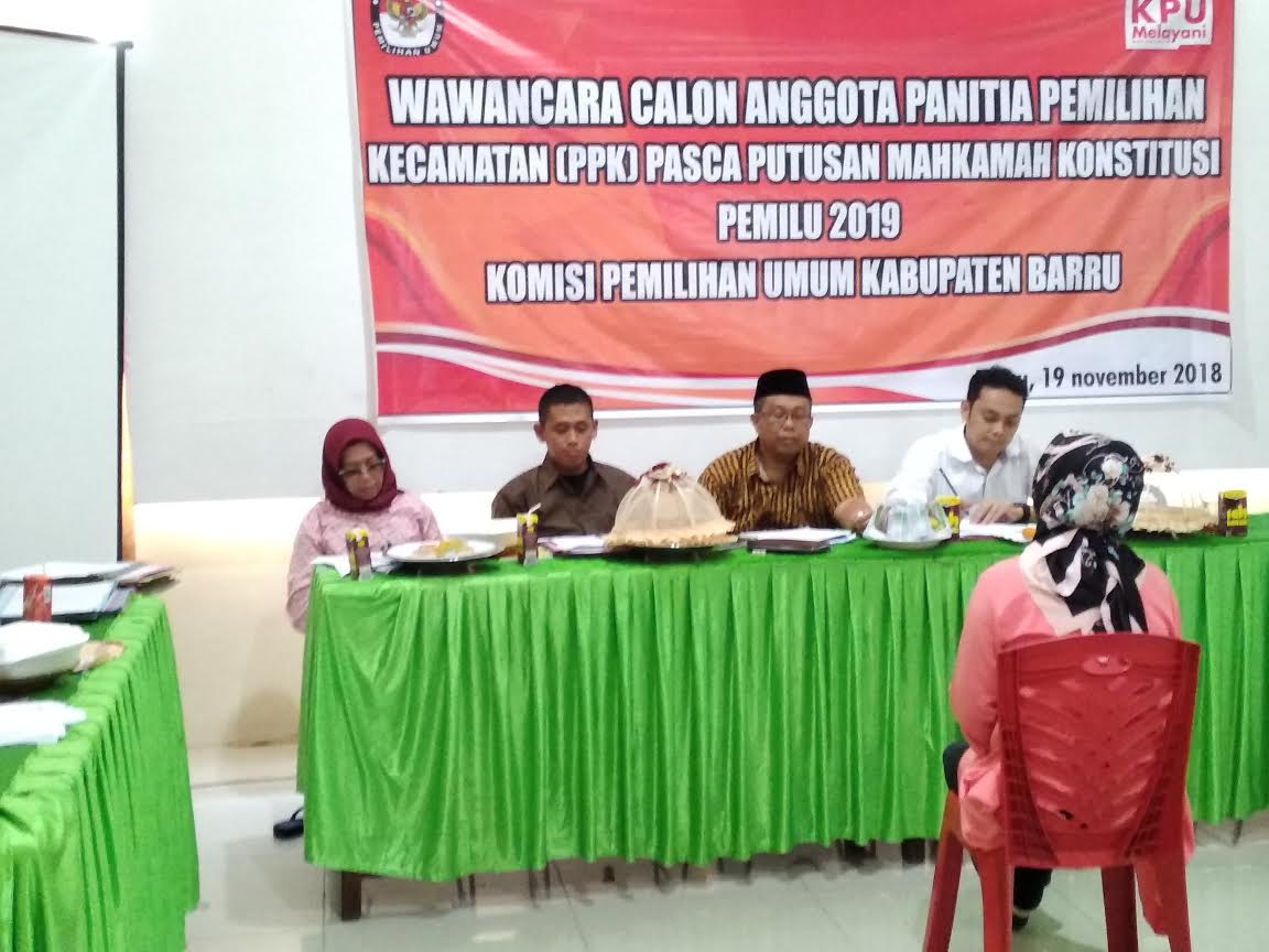 TRIBUNBARRU. COM, BARRU - Jelang Pileg dan Pilpres 2019, Komisi Pemilihan Umum (KPU) Barru melakukan perekrutan Panitia Pemilihan Kecamatan (PPK).