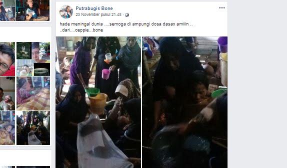 Kabar itu tersebar lewat status facebook yang dibagikan sejumlah akun. Salah satunya akun Putrabugis Bone, yang menulis: 'Hade meninggal dunia, di Ceppie'