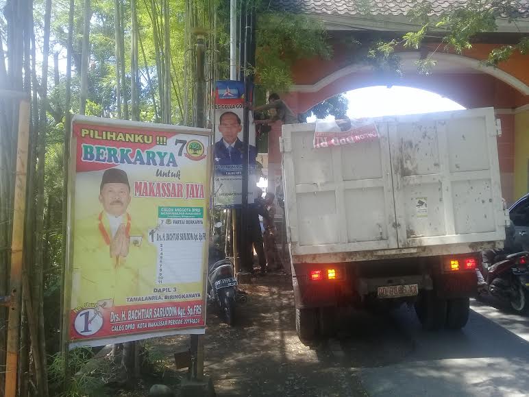 Penertiban kali ini diketahui merupakan yang kedua kalinya dilakukan Panwascam Tamalanrea bersama Satpol PP.