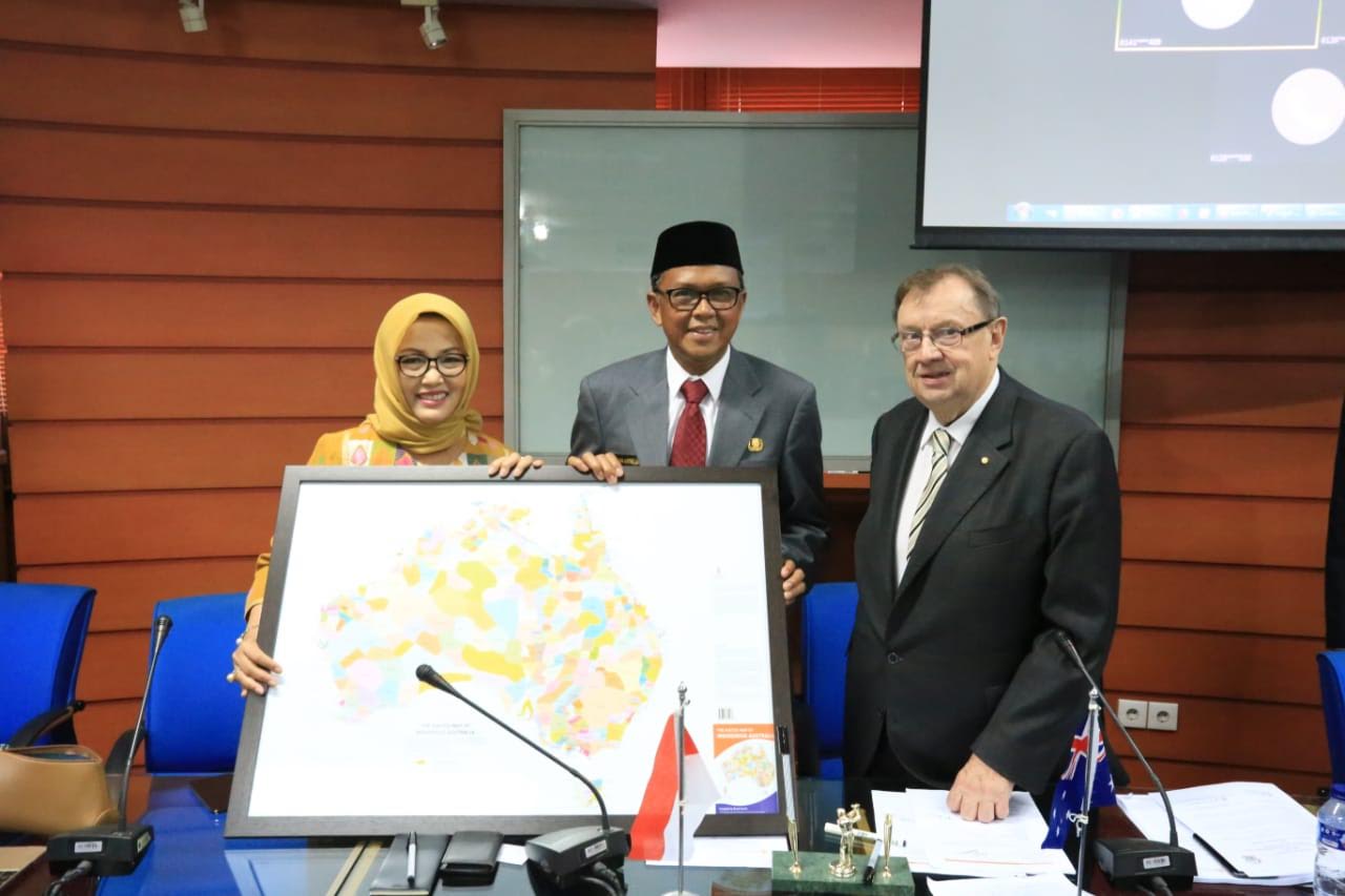 Usai penandatanganan, Australia-Indonesia Centre memberikan cenderamata berupa peta kepada NA.