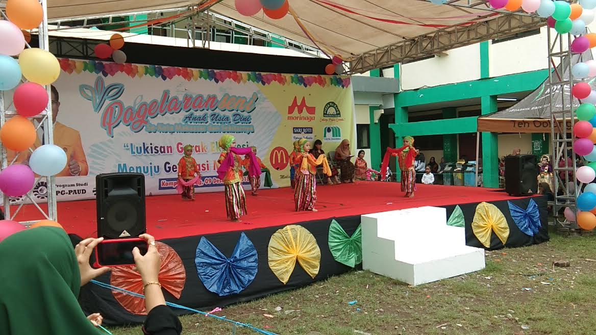 TRIBUN-TIMUR.COM, MAKASSAR - Himpunan Mahasiswa Program Studi (HMPS) Pendidikan Guru Pendidikan Anak Usia Dini (PGPAUD) Fakultas Ilmu Pendidikan Universitas Negeri Makassar (FIP UNM) menggelar Pagelaran Seni Anak Usia Dini se-Kota Makassar dan sekitarnya, di Kampus FIP UNM, Minggu (9/12/2018).