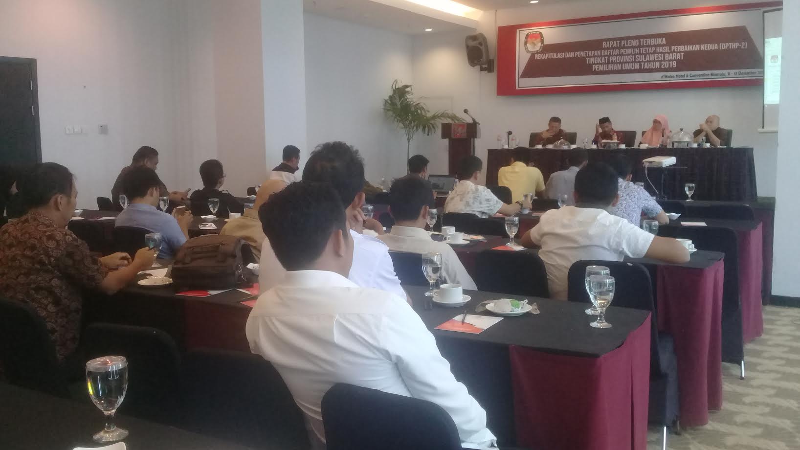 Rapat pleno penetapan DPTHP-2 Pemilu 2019 berlangsung di d'Maleo Hotel Mamuju, Jl. Yos Sudarso, Kelurahan Binanga, dipimpin oleh Ketua KPU Sulbar, Rustang.