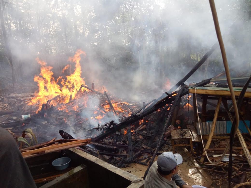 Dari kebakaran tersebut, satu rumah panggung milik warga bernama Sulo (63), rata dengan tanah, sementara rumah lainnya milik Supardi (40) terbakar dibagian dinding.
