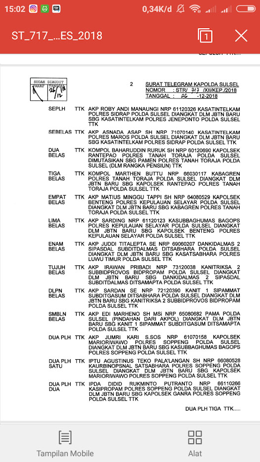 Kapolsek Donri-Donri AKP. Pawe Juda dimutasi ke Polda Sulsel.