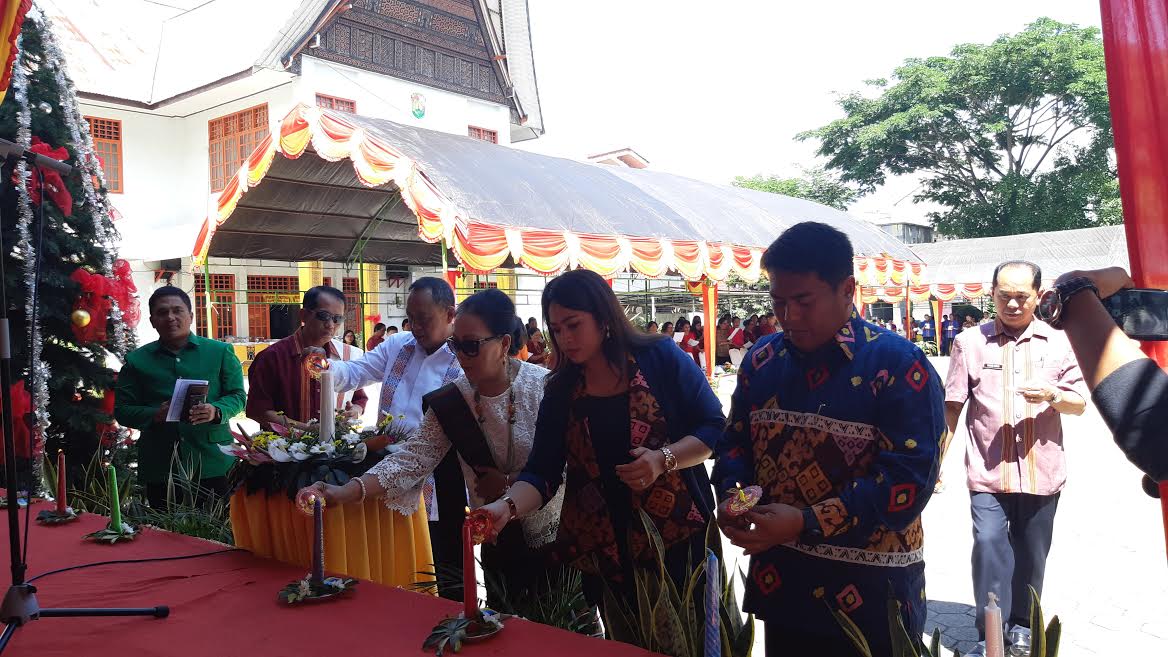 TRIBUNTORAJA.COM, RANTEPAO - Keluarga besar Pemerintah Kabupaten Toraja Utara menggelar ibadah natal oikumene bersama di halaman Kantor Bupati, Jalan Sam Ratulangi No 1 Kecamatan Rantepao, Sabtu (29/12/2018).