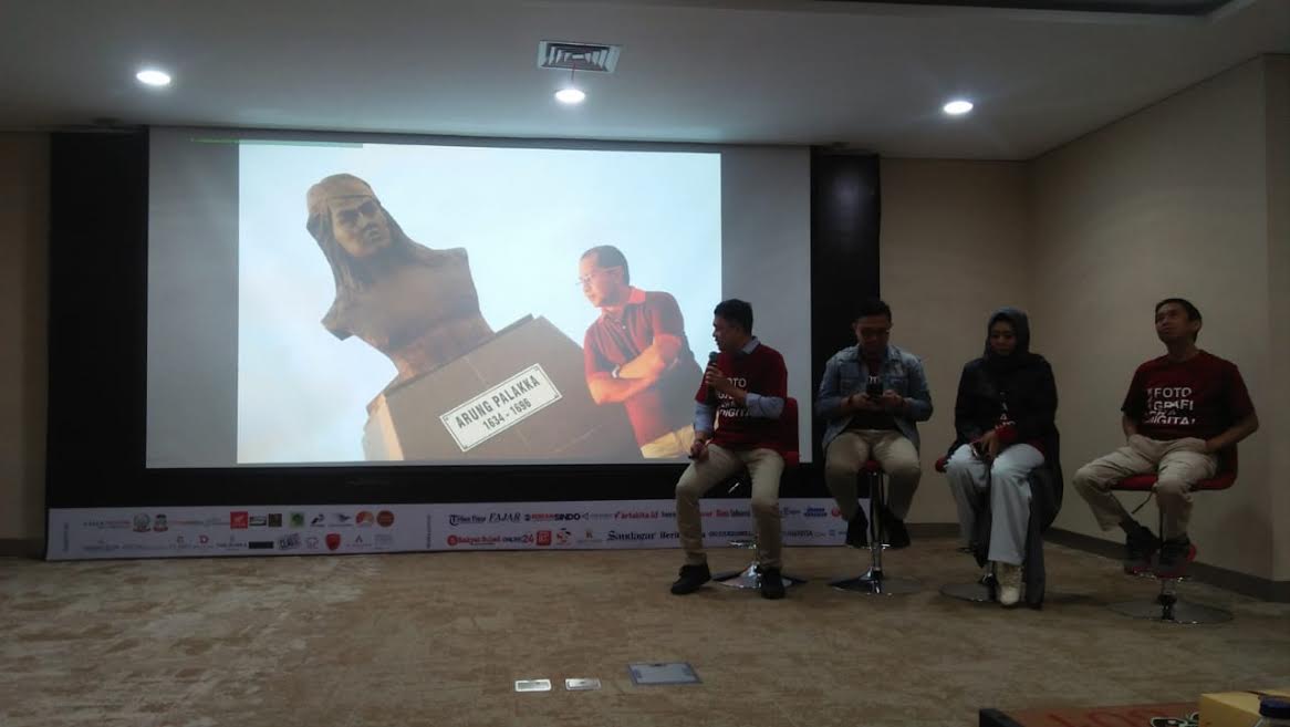Devo Khadaffi menjadi pemateri dalam diskusi akhir tahun dari PFI Makassar, di Baruga Telkomsel, Jl AP Pettarani No 3 Manurukki, Makassar, Sabtu (29/1