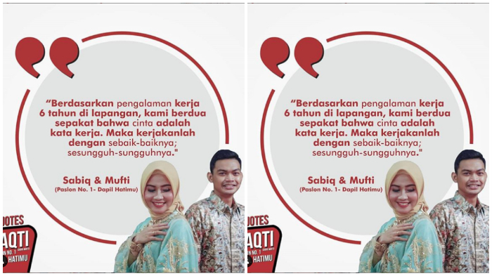 Desain prewedding pernikahan pasangan Muhammad Sabiq dan A Muftihaturrahma viral di media sosial karena menyerupai atribut Pemilu 2019, khususnya Pilpres 2019.