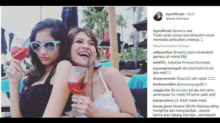 "Karma is real, Tuhan selalu punya cara tersendiri untuk membalas perbuatan umatnya," ujar Faye di keterangan postingannya.