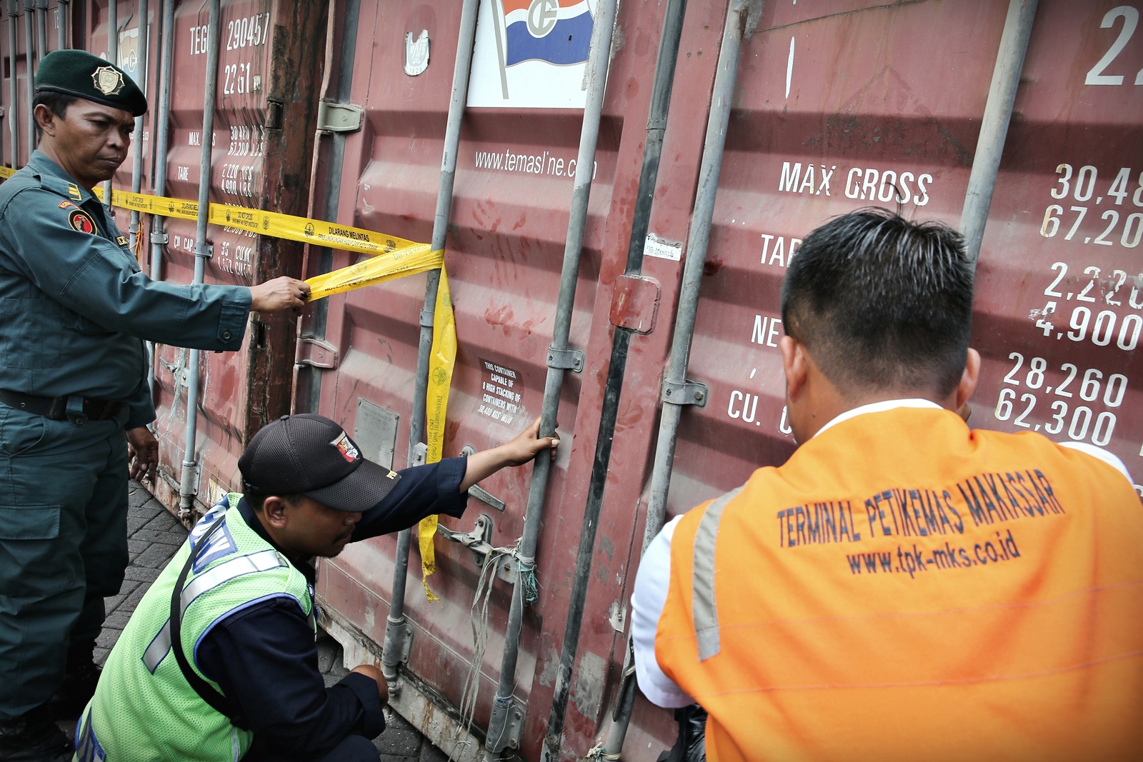 FOTO: Tim Lantamal VI Makassar dan KLH Amankan 57 Kontainer Kayu Ilegal di Pelabuhan