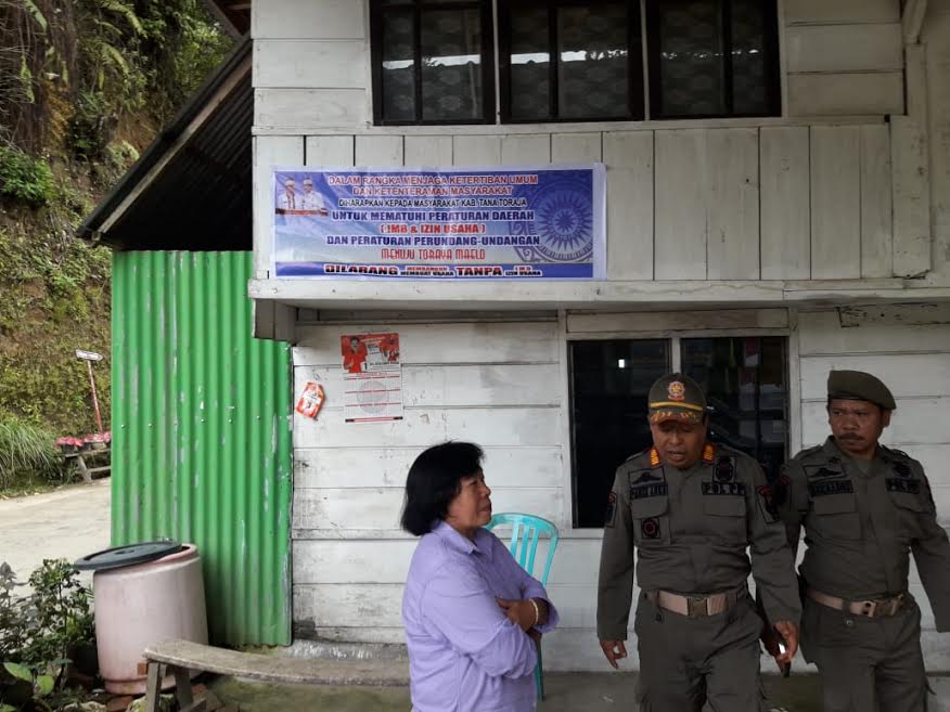 Satpol PP dan Damkar Pemerintah Kabupaten Tana Toraja melakukan penertiban bangunan tanpa IMB dan izin usaha.
