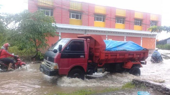 TRIBUN-TIMUR.COM, MAKASSAR - Jl Poros Paccerakkang, tepatnya di Kelurahan Katimbang, Kecamatan Biringkanaya, Kota Makassar, masih terendam air, Rabu (23/1/2019).