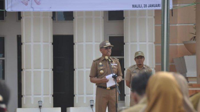 TRIBUNLUTIM.COM, MALILI- Bupati Luwu Timur, Thorig Husler menyerahkan 59 Dokumen Pelaksanaan Anggaran (DPA) tahun 2019 ke pengguna anggaran di Halaman Kantor Bupati Luwu Timur, Senin (28/1/2019).