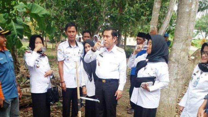 Mahmud Yusuf didampingi beberapa pejabat Pemkab Sidrap meminum air hasil fasilitas Pamsimas tersebut.