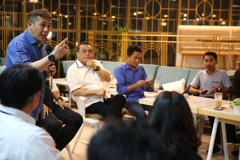 TRIBUN-TIMUR.COM, MAKASSAR - Wakil Wali Kota Makassar, Syamsu Rizal MI, bersama Menteri Pendayagunaan Aparatur Negara dan Reformasi Birokrasi (Menpan RB), Syafruddin, berbincang bersama selegram Makassar terkait perkembangan ekonomi kreatif di Nipah Mall Makassar, Selasa (29/1/2019) malam.