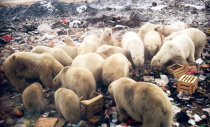 Beberapa beruang kutub ditemukan tengah mengais makanan di tempat pembuangan sampah.