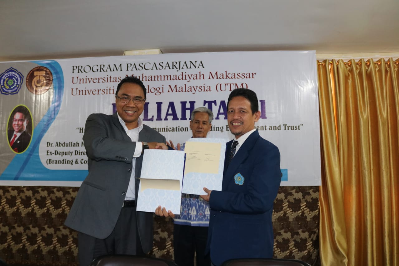 Ia juga merasa bersyukur kepada Pascasarjana Unismuh yang memiliki inisiatif memanfaatkan kehadiran Diputy Director UTM membawakan kuliah umum di Unismuh Makassar dalam untuk penambahan wawasan serumpun.