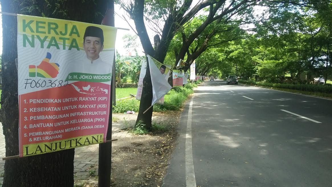 Lagi, Banner Jokowi 'Pakui' Pohon di Jl Tun Abdul Razak Gowa