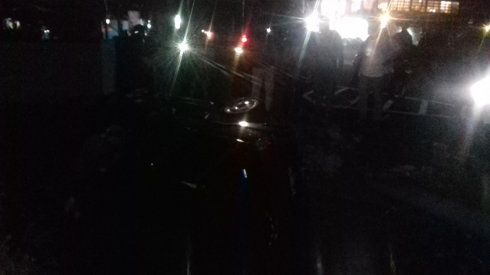 Kijang Toyota hitam berplat KT 1198 DH terjun ke kali di depan Kantor Camat Masamba, Jl Jenderal Ahmad Yani, Masamba, Kabupaten Luwu Utara, Jumat (22/2/2019) sekitar pukul 22.00 Wita.
