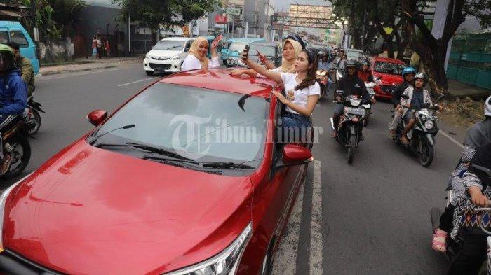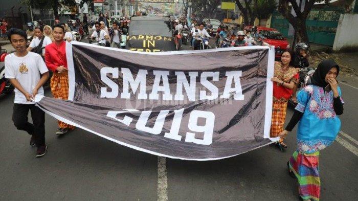 TRIBUN-TIMUR.COM, MAKASSAR --Sejumlah siswa siswi SMAN 1 Makassar melakukan konvoi di Jl Veteran dan Jl Gunung Bawakaraeng, Makassar, Sabtu (23/2/2019).
