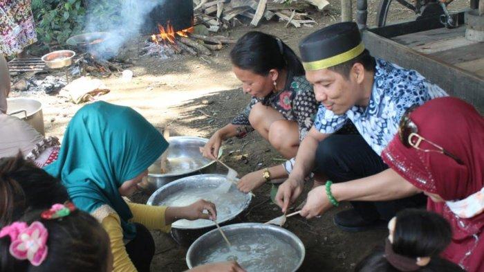 Mantan Ketua KPU Luwu Utara terpantau sedang bercengkrama dengan emmak-emmak militan sambil unjuk kebolehan "maddui", istilah dalam pembuatan kapurung, yang merupakan makanan wajib di kampung-kampung di kawasan Tana Luwu.