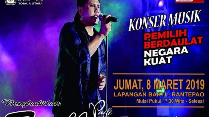 KPU Toraja Utara akan menggelar sosialisasi jelang penyelenggaraan Pemilu 2019, akan dihibur Fadly Padi.