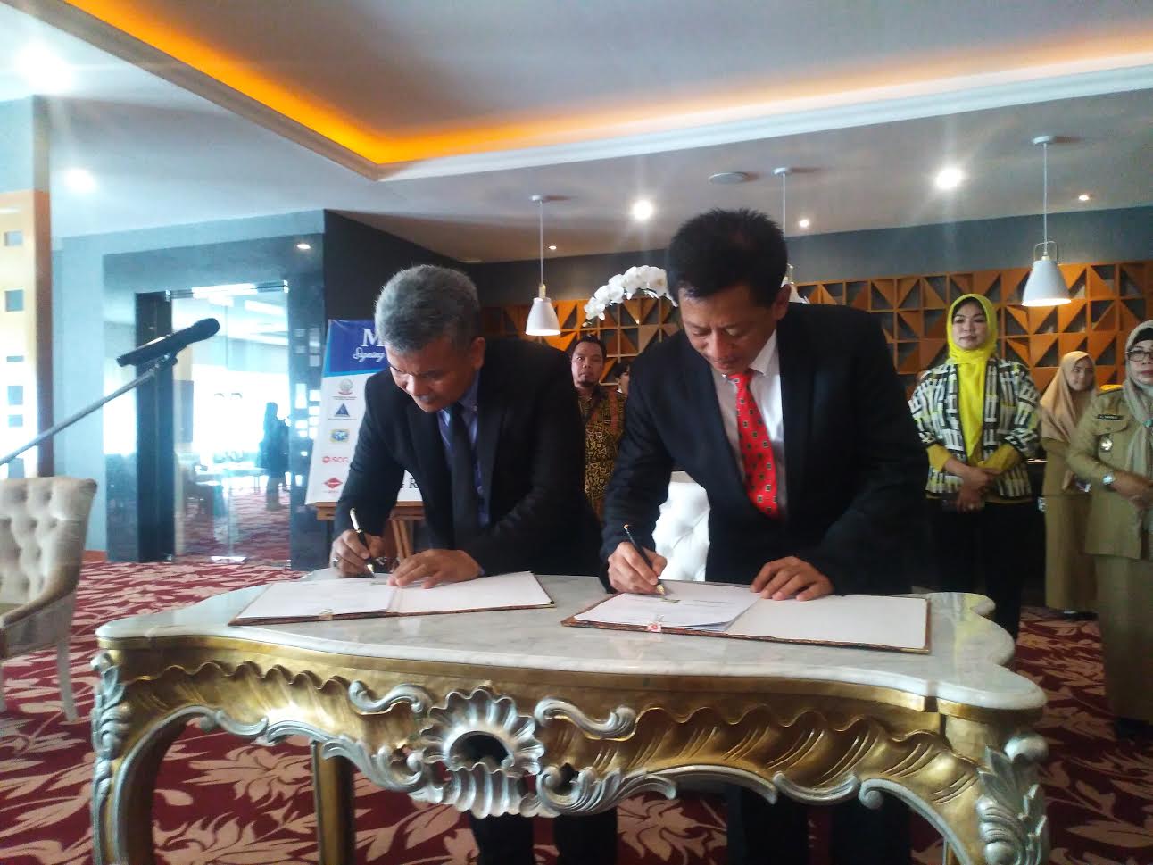 Penandatanganan yang dilakukan Dirut Perusda Sulsel, Taufik Fahcruddin disaksikan langsung Pj Sekretaris Daerah Sulsel, Ashari Fakhsirie Radjamilo.
