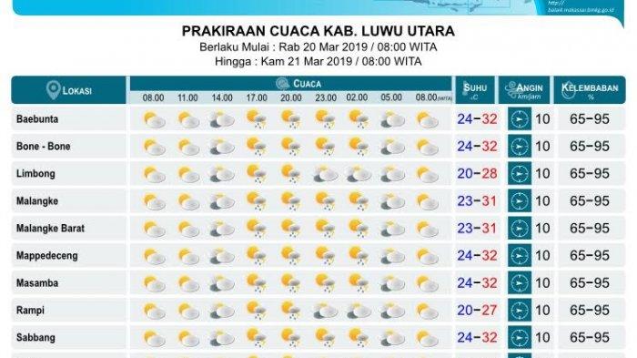 Demikian menurut prakiraan cuaca Badan Meteorologi Klimatologi dan Geofisika (BMKG) Stasiun Andi Jemma Masamba di Luwu Utara.
