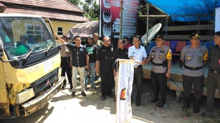 Pendistribusin logistik ditandai dengan pelepasan secara resmi di Kantor KPU Mamasa, Rantebuda, Desa Rambusaratu, Kecamatan Mamasa