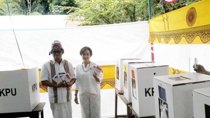 TRIBUNTORAJA.COM, MAKALE - Bupati Tana Toraja, Nicodemus Biringkanae menyalurkan hak suaranya di TPS 004 Kelurahan Bombongan, Kecamatan Makale, Tana Toraja, Sulsel, Rabu (17/4/2019).