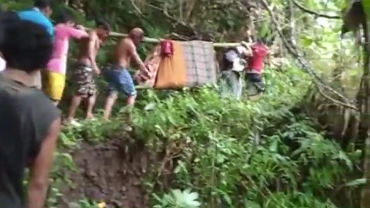 Made ditandu menggunakan empat sarung. Proses evakuasi Made terbilang sulit, karena harus naik turun bukit dan melewati semak belukar.