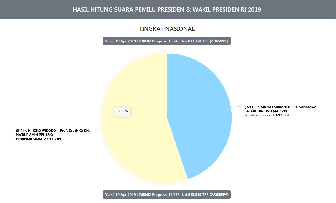 55,1% untuk Jokowi-Maruf dan 44,8% untuk Prabowo-Sandi.