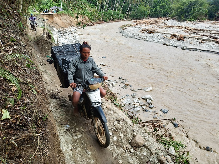 "Kami melewati kondisi jalan becek, sampai saya jatuh karena motor mati tiba-tiba," ujar Ketua Panwaslu Kecamatan Kulawi Selatan, Djoni Katip.