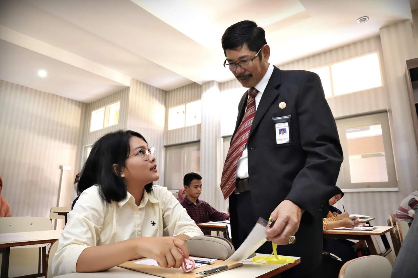 Plt. Direktur Poltekpar Makassar, Drs. Muhamad Arifin, MPd. melakukan peninjauan pelaksanaan ujian Seleksi Bersama Masuk Perguruan Tinggi Negeri Pariwisata (SBMPTNP) di kampus Poltekpar Makassar, Senin (6/5/2019).