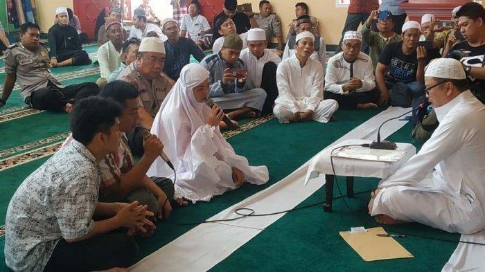 Satu keluarga ayah, ibu dan anaknya di Palembang, Sumatera Selatan masuk Islam dan mengucapkan syahadat di Masjid Cheng Ho Jakabaring, Palembang, Jumat (10/5/2019).