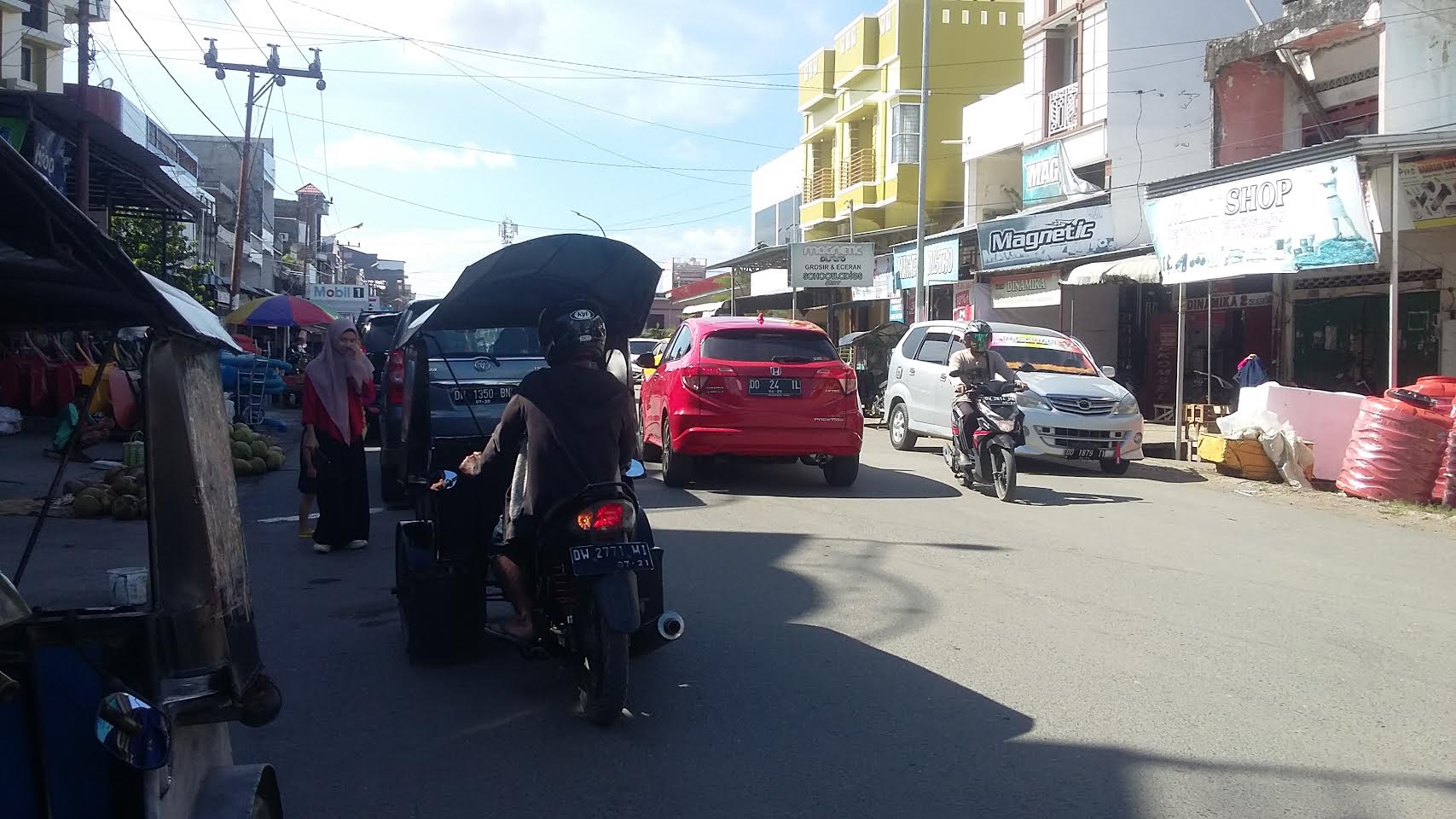 Hal tersebut bisa terlihat di Jl Andi Malingkaan. Jalan yang mengarah ke Pasar Sentral Sengkang, padat sesak oleh kendaraan, Rabu (29/5/2019) siang.