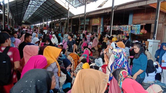 Mulai dari area terminal, stand ojek, area pedagang kain, sayur hingga di stand penjual ikan dan ayam juga dipadati pengunjung.