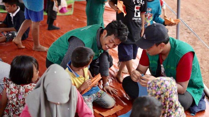 Di hadapan para relawan, anak-anak tersebut tampak ceria dan seolah telah melupakan musibah yang telah menimpanya.