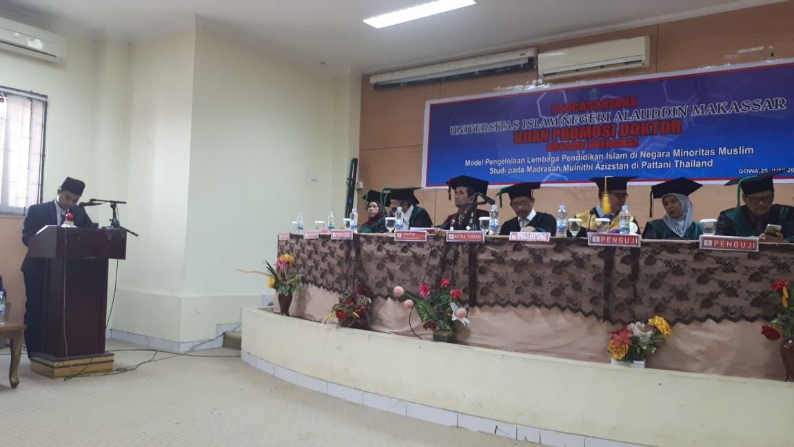 Tepat pada tanggal 25 Juni 2019, Mahasiswa Thailand Hussan Dueremae, berhasil mempertahankan disertasinya dengan judul model pengelolaan lembaga pendidikan Islam, di negara minoritas muslim (studi pada madrasah mulnithi azistan di pattani thailand) di hadapan 9 penguji.