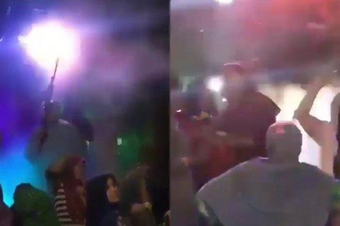 Mereka tetap berjoget bersama tanpa mempedulikan senjata yang ditenteng wanita tadi.