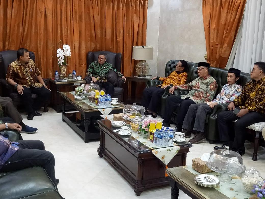 Pj Wali Kota Makassar M Iqbal S Suhaeb bertemu Wali Kota Parepare Taufan Pawe di acara silaturahmi dan halalbihalal di Baruga Anging Mammiri, Minggu (30/6/2019) malam