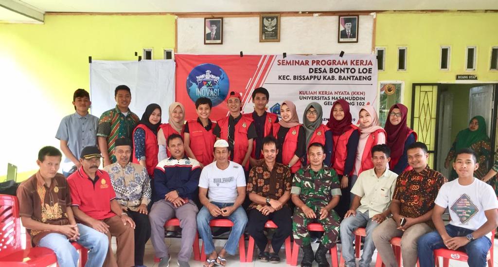 TRIBUN-TIMUR.COM - Mahasiswa Kuliah Kerja Nyata (KKN) Universitas Hasanuddin Gelombang 102 di Desa Bonto Loe, menggelar kegiatan seminar program kerja di Aula Kantor Desa Bonto Loe, Kecamatan Bissappu, Kabupaten Bantaeng, Kamis (4/7/2019) lalu.