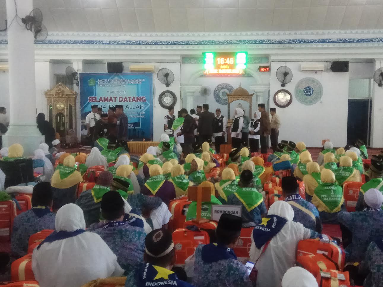Kedatangan JCH ini, diterima di Mesjid Quba Asrama Haji, oleh Panitia Penyelenggara Ibadah Haji (PPH) Embarkasi Makassar.