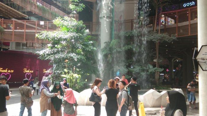 "Tempatnya lumayan keren, konsep interior ala alam lepas dengan air terjun buatan di tengah mall. Keren sih untuk berswafoto,"kata Dina, salah satu pengunjung.