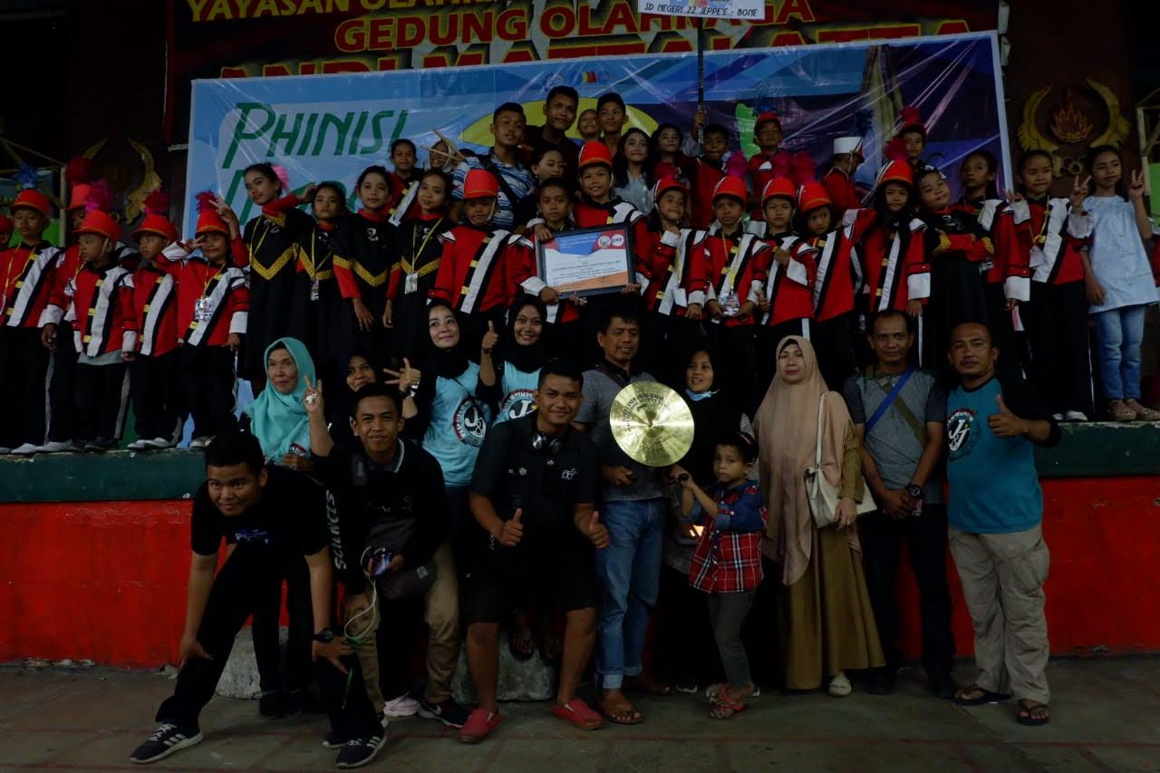 TRIBUNBONE.COM, WATAMPONE - Drum Band Nusa Emas J&J Sekolah Dasar Negeri (SDN) 22 Jeppe'E Kabupaten Bone, berhasil meraih juara umum pada ajang Phinisi Marching Band Competition (PMC) 3 se-Indonesia Timur 2019.