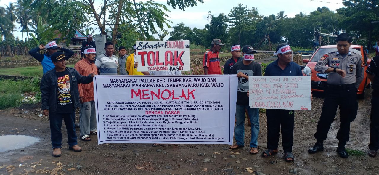 Selain masyarakat Lingkungan Pallae, Kelurahan Wiringpalennae, Kecamatan Tempe, juga bergabung masyarakat Dusun Massappa, Desa Bentenglompoe, Kecamatan Sabbangparu untuk meolak pengoperasian tambang pasir tersebut. (TribunWajo.com)
