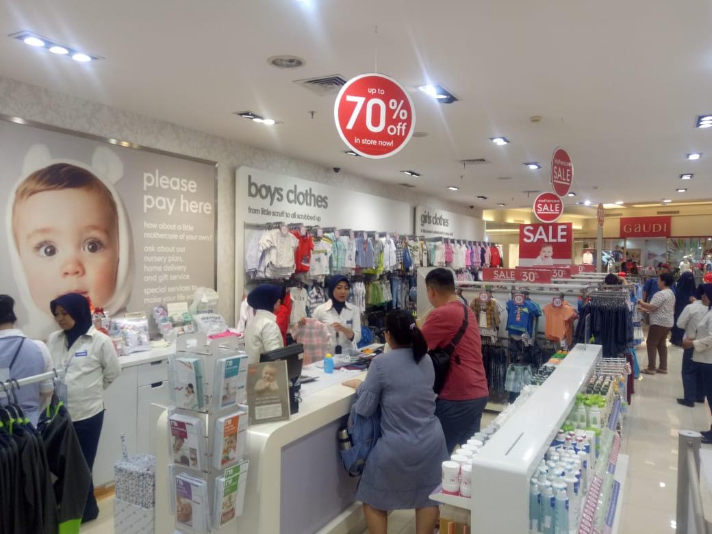 Untuk kebutuhan anak-anak, diskon ini antara lain hadir di toko baju anak-anak Mothercare. Di sini, aneka kebutuhan bayi dan balita mendapat potongan harga hingga 70 persen.