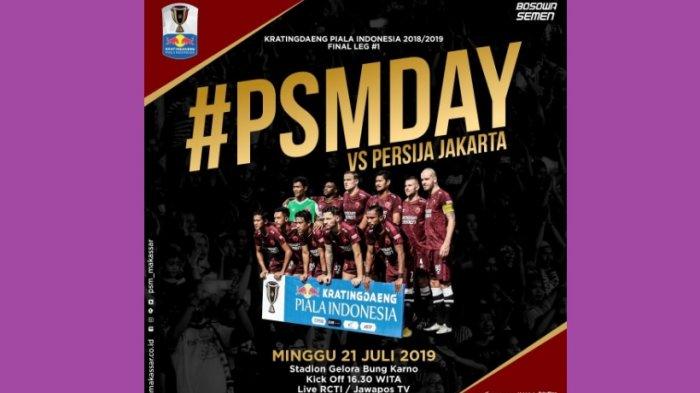 Persija Jakarta akan menjamu PSM Makassar pada leg pertama Final Piala Indonesia 2019 pada Minggu (21/7/2019).