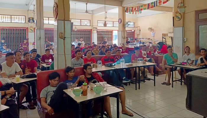 TRIBUN-MAROS.COM, TURIKALE - Ketua DPRD Maros, Chaidir Syam ikut nonton bersama, pertandingan PSM Makassar vs Persija Jakarta, di warkop Buana eks terminal Marusu, Minggu (21/7/2019).