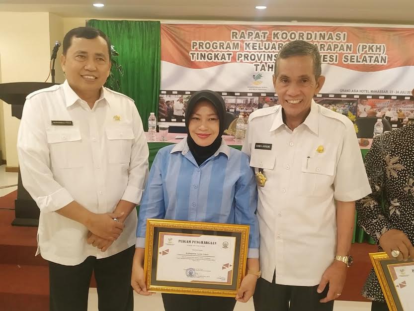 Penghargaan diberikan pada saat rapat koordinasi PKH tingkat Provinsi Sulsel di Makassar, Selasa (23/7/2019).